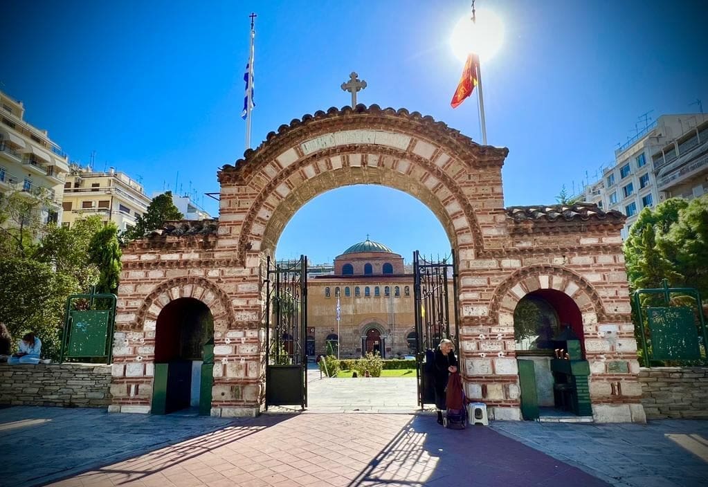 Ngày đầu tiên, khi mình vừa đến Thessaloniki, sau khi đi lần mò theo cổ thành đã ghé vào, chụp hình ngôi nhà thờ cổ, nhưng vắng vẻ, không thấy bóng dáng người, cửa đóng khoá. Hôm sau, khi nghe linh mục chánh xứ đền thánh Phaolô mách cho biết, mình trở lại. Hôm nay, thứ Bảy, các cửa nhà thở toang mở, thì ra, đang chuẩn bị cho nghi thức rửa tội cho một em bé.