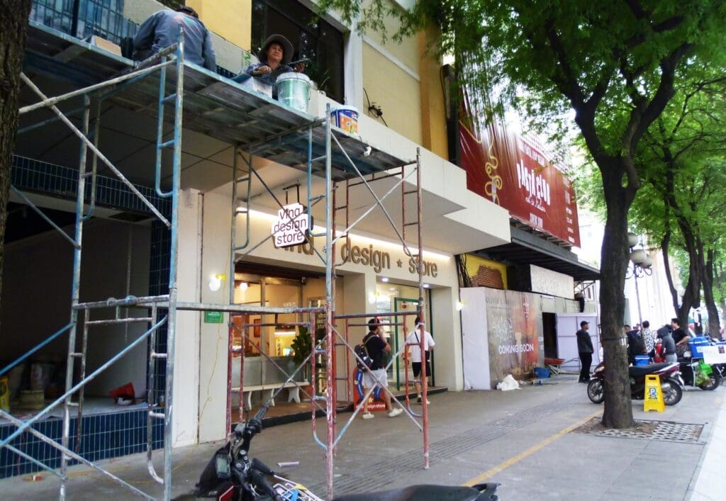 Còn bên phía mặt tiền đường Hai Bà Trưng, thuộc khu vực do Viễn thông TP.HCM (thuộc Tập đoàn Bưu chính Viễn Thông) quản lý, hàng trăm thợ vẫn tấp nập ra vô, làm việc liên tục ở một loạt cửa hàng chắc chắn sẽ khai trương nay mai.