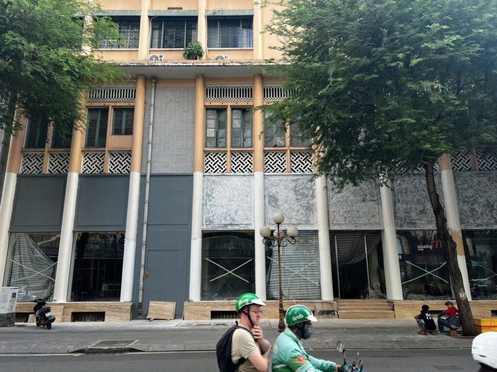 Khối công trình phụ, kiệt tác tiên phong kiến trúc Sài Gòn hiện đại bên hông Bưu điện Sài Gòn xây dựng năm 1932 đang trổ cửa mở cửa hàng