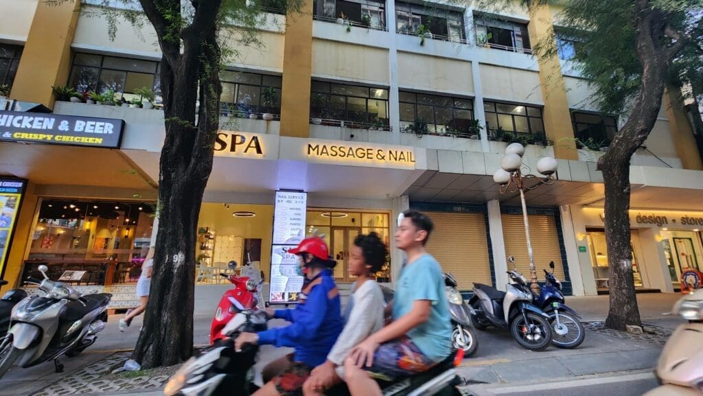 Khu mặt tiền đường Hai Bà Trưng thuộc Viễn thông TP.HCM nơi trước đây là bưu cục ngoại dịch, nay là cà phê, gà và bia, spa, massage, nail.. Ảnh: Phúc Tiến