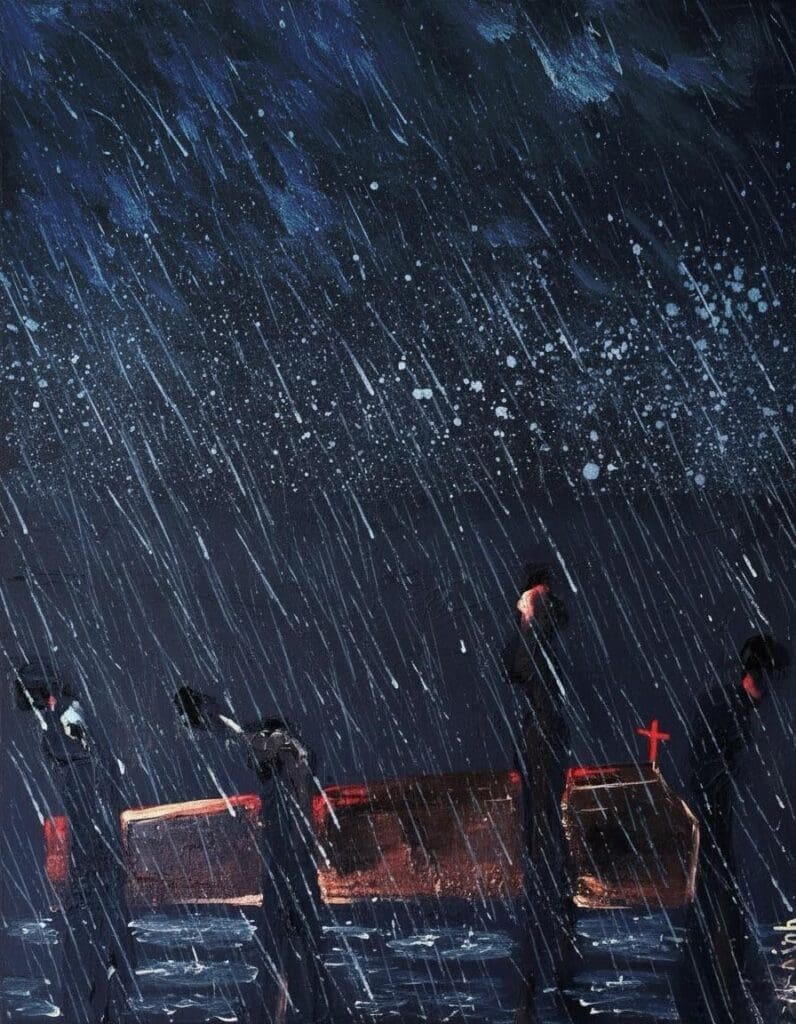 Những người khiêng hòm trong mùa bão. Tranh Đinh Trường Chinh