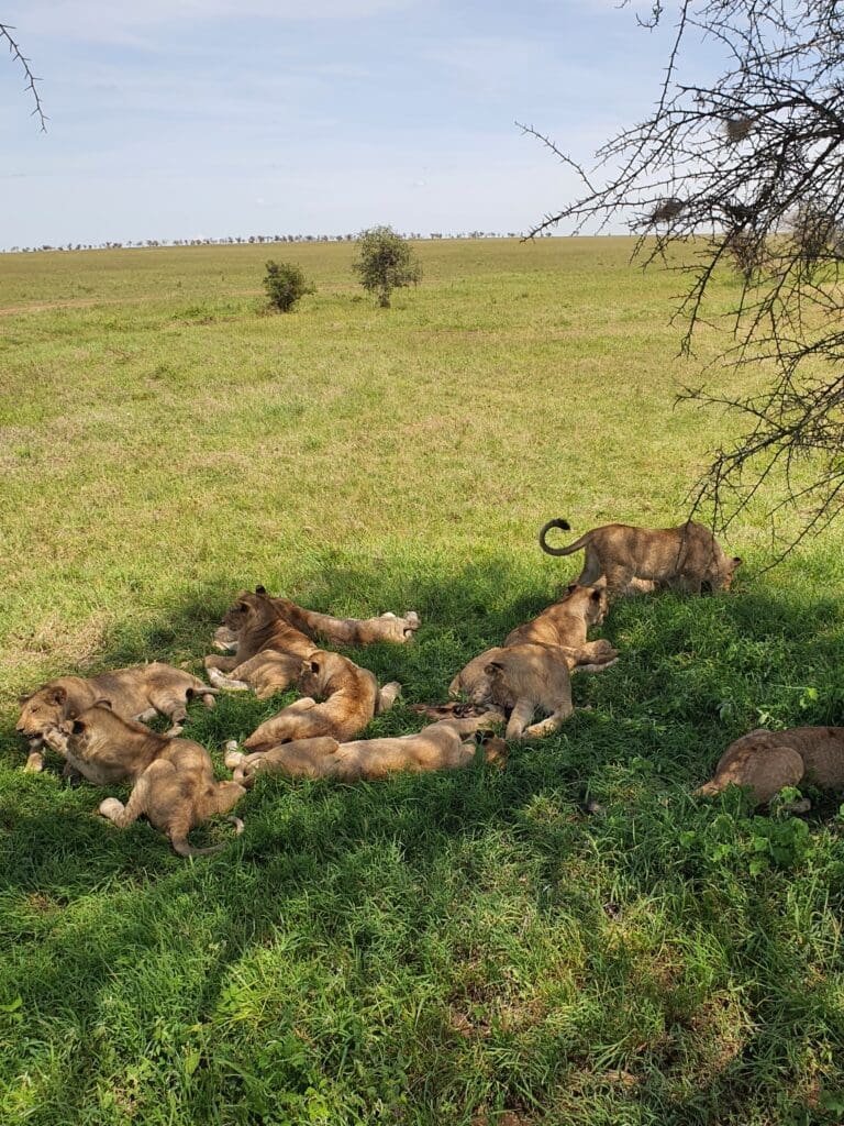 Các safari, hành trình du ngoạn trong các công viên quốc gia hay khu bảo tồn, quả thực là rất thú vị. Vợ chồng tôi và anh tài xế -đồng thời cũng là hướng dẫn viên- đã du hành liên tục năm ngày trong các khu rừng này. Ban đêm chúng tôi ngủ trong những lodge, những khách sạn mà khách hàng ngủ trong các lều vải dựng chung quanh một trung tâm gồm văn phòng, phòng ăn và hồ tắm. Ban đêm khách hàng được khuyên không nên ra khỏi phòng vì có thể có thú dữ, kể cả sư tử. Trong một lần một bầy linh cẩu đã viếng khách sạn của chúng tôi.
