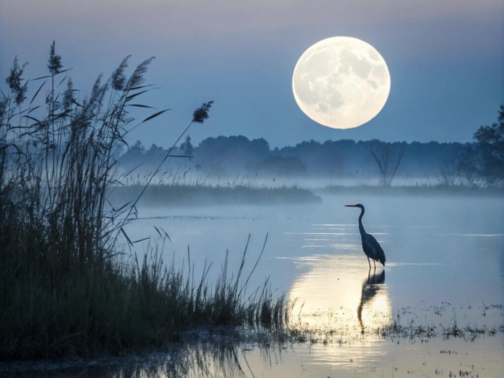 Trăng như sương trên ruộng lúa xanh
