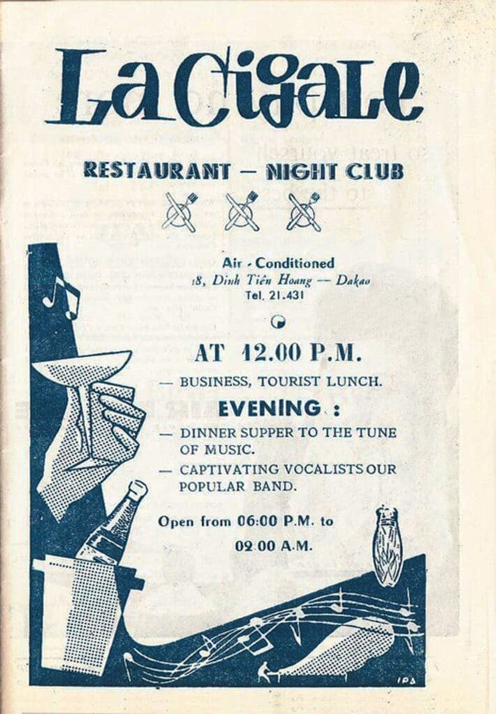 Một nhà hàng sành điệu được nhắc tới là Le Relais ở số 6 Nguyễn Văn Thinh; với tay đàn Jean di Martino và cây đàn guitar của ông, Ảo thuật gia Tchen Tche Lio và Marc Jean Michel trong những bản hit năm 1957. Và Le Guillaume Tell số 32-34 Trịnh Minh Thế (nay là Nguyễn Tất Thành) của ông Leccia Antoine, Khánh Hội có gắn máy lạnh.