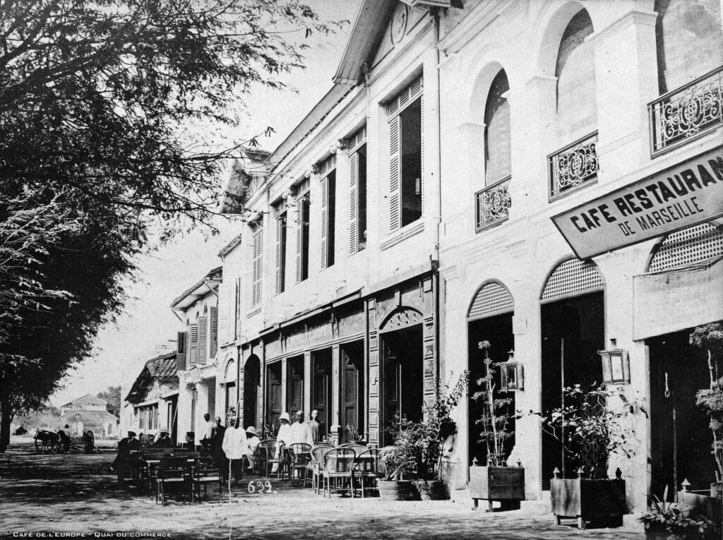 Các tài liệu cho thấy từ những năm 1890, các nhà hàng Pháp ở Sài Gòn thường gắn với các khách sạn. Ví dụ, Grand Café, Café de la Musique, và Café Restaurant du Continental, lần lượt được liên kết với khách sạn Catinat, Grand Hotel des Nations và khách sạn Continental. Những nhà hàng này cung cấp cả ẩm thực bình dân và ẩm thực cao cấp. Vào buổi chiều hoặc sau buổi biểu diễn, mọi người sẽ đến chỉ để ăn nhanh. Các nhà hàng quảng cáo trên tờ báo địa phương La France d’Asie, quảng bá súp và bánh mì, gan ngỗng và trứng cá muối, thịt hầm và sa lát, sườn cừu và bít tết, trái cây và bánh ngọt. Các nhà hàng sang trọng cũng quảng bá dịch vụ bữa tối sang trọng của họ thông qua quảng cáo hay tin tức trên báo chí về những bữa tiệc chiêu đãi hoành tráng dành cho các chức sắc và quan chức.