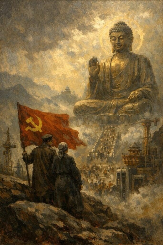 Ở Trung Quốc, Phật giáo được phép tồn tại — nhưng trong hình thức được kiểm soát tuyệt đối. Không gian được quy hoạch. Diễn ngôn được chuẩn hóa. Biểu tượng được nâng lên kích thước khổng lồ. Không phải một pho tượng để chiêm bái, mà là một hệ thống tượng, một chuỗi không gian, một ngành sản xuất, một ngành du lịch, một nền kinh tế hoàn chỉnh xoay quanh tín ngưỡng đã được “làm an toàn”.