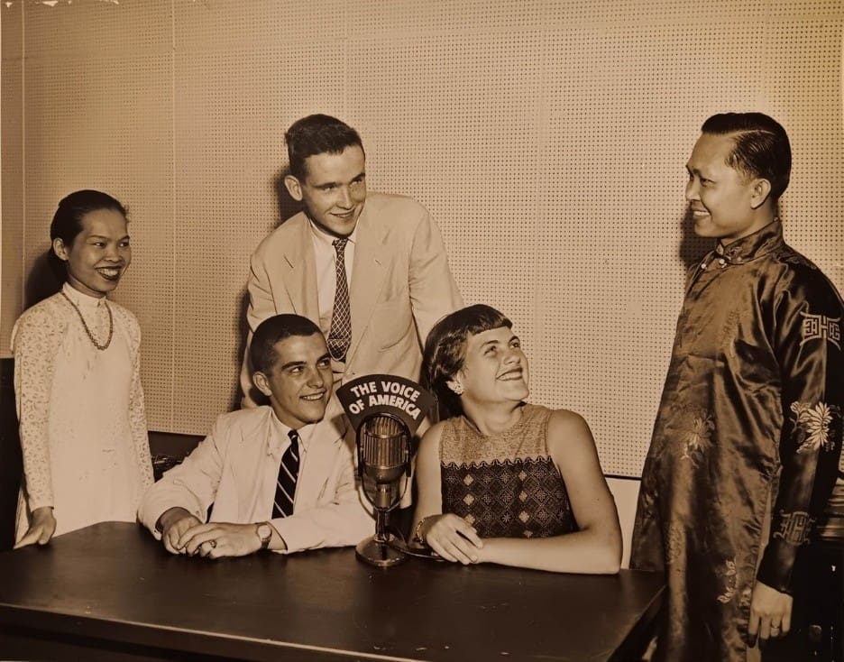 Ông Bùi Công Văn, người Cần Thơ, sanh năm 1919, là người có khiếu sinh ngữ. Ông biết tiếng Anh, Pháp, Nhật và Quảng Đông. Sau một thời gian làm tiếp viên hàng không cho hãng Air France và làm việc tại British Council ở Sài Gòn, ông được tuyển vào làm biên tập viên cho đài Tiếng Nói Hoa Kỳ VOA khi đó có trụ sở tại thành phố New York. Ông và gia đình đặt chân tới New York vào tháng 4 năm 1951.