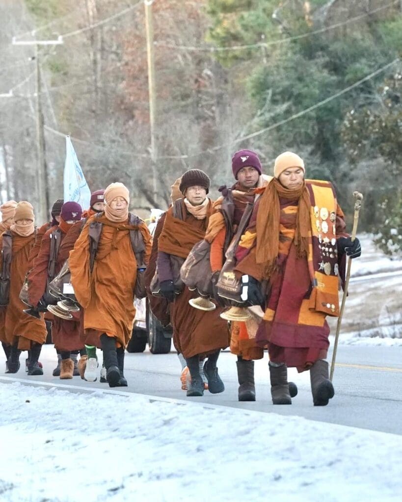 Đoàn sư đi bộ vì hòa bình ngày thứ 97 (1/30/2026). Photo: Facebook Walk For Peace
