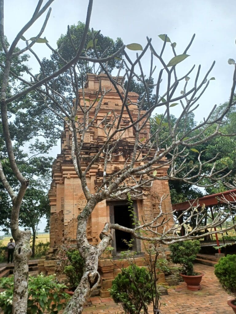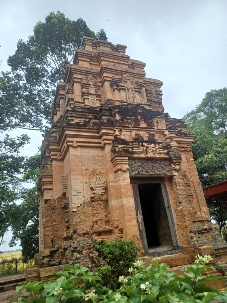 Chúng tôi đứng trước cửa tháp, lần lượt bước vào khuôn cửa lờ mờ tối, một khoảng không khí lờ mờ, ngột ngạt trước mặt, tượng thờ Yoni và Linga trước đây đã không còn. Những bát nhang trên các bệ thờ, rưng rưng cháy đỏ. Mùi trầm nhang, xen lẫn mùi phân dơi thoang thoảng, hư ảo. Tạo cảm giác vừa trầm mặc, vừa như nuối tiếc những mất mát của thời gian, vật đổi sao dời và cả lòng người đối với một công trình Văn hóa, Tâm linh của một đế chế xa xưa còn lưu lại…