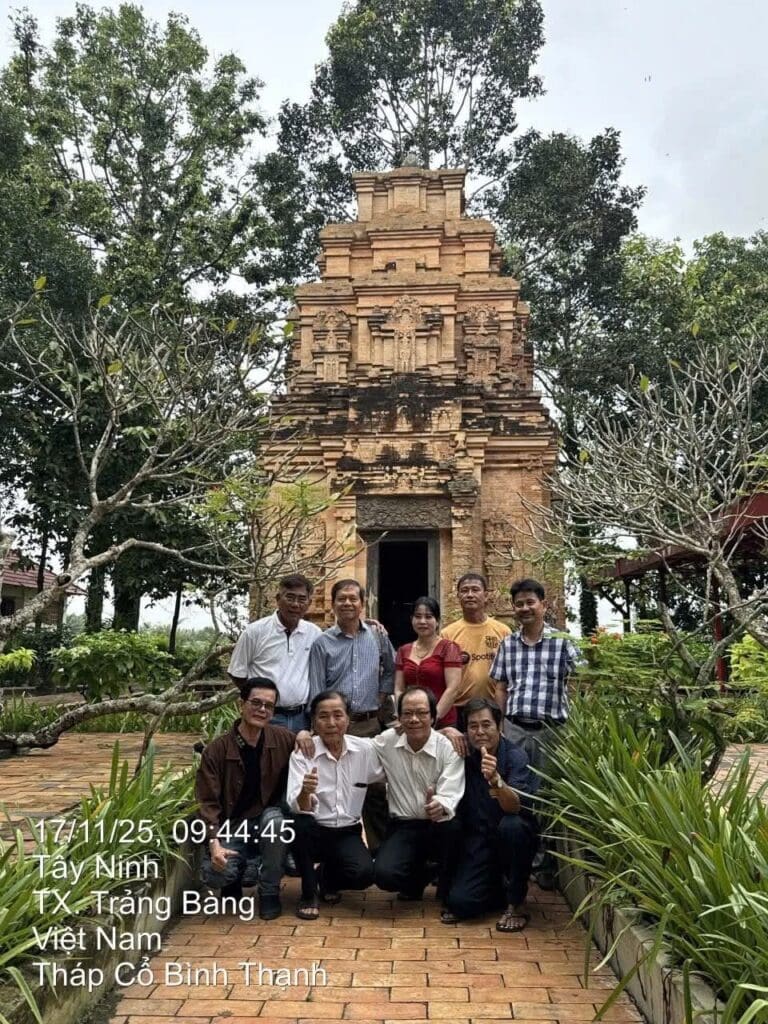 Trời Tây Ninh, cuối thu đầu đông, qua hơn một tuần, liên tục mưa sớm, mưa chiều… Hôm nay đã có dấu hiệu hưng hửng nắng. Cái nắng sớm mai, mềm dịu, man mác, chút gây gây lạnh. Đoàn chúng tôi từ bùng binh Gò Dầu, nơi chia Quốc lộ 22 thành hai ngã, một là Quốc lộ 22B, hướng lên thành phố Tây Ninh, và một là “đường Xuyên Á”, hướng về Bến Cầu, qua khẩu Mộc Bài, sang Ba Vét, Campuchia. Theo đường Xuyên Á chừng vài cây số, đến ngã 3 ấp Voi, chúng tôi rẽ trái, hướng về 3 xã cánh Tây: Phước Chỉ, Trà Cao, Bình Thạnh, nơi có tháp cổ Bình Thạnh và đền Bình Thạnh, nơi chúng tôi muốn đến thăm viếng.