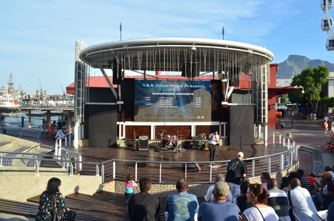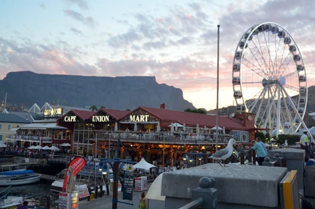 Cuối thế kỷ 19, hoàng tử trẻ tuổi Alfred, con nữ hoàng Victoria chú tâm nhiều đến Cape Town và ông đã bỏ công sức nhiều để xây dựng vùng đất này. Nhưng có lẽ Cape Town nổi tiếng hơn và nhộn nhịp sầm uất hẳn lên từ khi đươc chính quyền thành phố cho sửa sang và hiện đại hóa lại vào năm 1988. Khu vực Victoria & Alfred Waterfront trở thành như một biểu tượng của Cape Town, phía trước mặt Waterfront là vịnh Table Bay, sau lưng là ngọn núi nổi tiếng Table Mountain. V&A Waterfront là một quần thể bao gồm Victoria Wharf Shopping Center, một sân khấu ngoài trời Amphitheatre, các bến Quay Four – Quay Five với các restaurant tình tứ thơ mộng bên cạnh bến cruise. Nhờ vào vị trí dễ tìm, Cape Unione Mark của Quay Four bỗng như là nơi chốn hẹn hò của những cặp tình nhân vào chiều tối cuối tuần, nơi gặp gỡ của những người khách lạ phương xa. Có ngồi ở đây du khách mới cảm nhận được cái không gian ấm cúng của nó và đồng thời có dịp quan sát được tất cả sự sầm uất náo nhiệt của khu vực lạ lùng này. Nếu du khách may mắn có dịp ghé Waterfront vào chiều tối cuối tuần thì bạn có nhiều cơ hội được xem trình diễn ca nhạc ở ngay Amphitheartre. Các ca sĩ trình diễn xem ra rất thoải mái, không câu nệ lắm về cách ăn mặc và số khán giả cũng đông hết cả chỗ ngồi. Những nhóm nghệ sĩ da đen với y phục cổ truyền trình diễn, tạo ra một nét đặc thù của Phi Châu trên các hè phố. Bên cạnh đó là cửa vào Victoria Wharf Shopping Center cũng ngập người đi shopping, có lẽ cũng là những tuần lễ chót sắp đến Giáng Sinh và năm Mới.