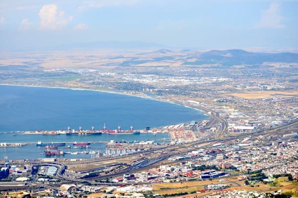 Dưới chân du khách là vịnh Table Bay và khu phố Cape Town nối liền nhau trải dài như một bức tranh vẽ. Bên cạnh đó là đỉnh Lion’s Head và ngọn đồi Signal Hill thoai thoải nối liền ra biển. Xa hơn một chút là Robben Island nổi tiếng là một nhà tù, nơi sinh sống của các tù nhân chính trị. Nelson Mandela người da đen tranh đấu nổi tiếng của Nam Phi (sau này ông trở thành Tổng Thống Nam Phi và được giải Nobel Hòa Bình) cũng đã có một thời gian sống trong tù tại Robben Island. Các thành phố nhỏ khác trên bán đảo Cape Peninsula cùng mây núi mờ ẩn hiện xa xa nơi phía chân trời làm tôi nhớ đến mây núi Sapa, mây núi Phú Sĩ cùng sương mờ trên đỉnh Pilatus của Lucern Thụy Sĩ.