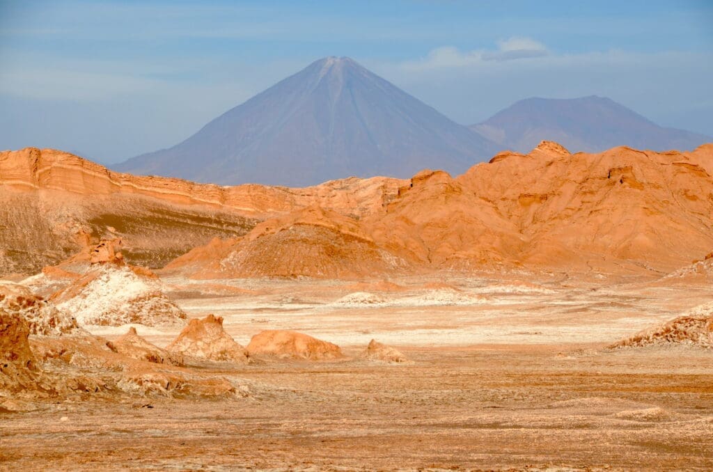 Từ thành phố San Petro de Atacama (một thành phố nhỏ nằm phía bắc thủ đô Santiago*) du khách lái xe về hướng đông của highway 27. Đây là con đường nối liền ba xứ Chile – Bolivia và Argentina, đồng thời cũng là con đường đưa du khách băng ngang qua những ngọn núi lửa nổi tiếng của dãy núi Andes. Trên đường đi, bạn sẽ có dịp đến gần chân ngọn núi lửa nổi tiếng nhất và đẹp nhất là núi lửa Licancabur. Licancabur có hình dáng ngọn núi Phú Sĩ của xứ Phù Tang, nhưng nó cao hơn Phú Sĩ nhiều, Phú Sĩ cao 3,776m còn Licancabur cao đến 5,920m. Ngọn Phú Sĩ nổi bật trên nền trời vì chung quanh nó không có ngọn núi cao nào để so sánh với nó. Nhưng chung quanh Licancabur thì khác hẳn, có rất nhiều ngọn núi lửa khác vây quanh. Nhờ thế mà người ta mới nhận thấy nét đẹp của nó khi so sánh với các ngọn núi khác. Người đẹp Tây Thi gái nước Việt xưa kia có đẹp, chắc hẳn là vì nàng đã được so sánh với các người con gái cùng thôn. Còn nếu thế giới chỉ có duy nhất một thiếu nữ trên cõi đời, dù nhan sắc nàng như thế nào chăng nữa thì tôi tin chắc người thiếu nữ đó vẫn là mỹ nhân của tất cả phái nam. Núi Phú Sĩ nằm trong trường hợp này! Xứ Phù Tang không có ngọn núi nào chung quanh Phú Sĩ nên người ta cho Phú Sĩ là đẹp. Nhưng nếu đem Phú Sĩ so với các ngọn núi lửa trên thế giới thì tôi vẫn cho Cotopaxi của Ecuador là một ngọn núi cao có hình dáng rất đẹp. Ngọn Licancabur tuy nhỏ và trên đỉnh không có nhiều tuyết nhưng lại có một vóc dáng cân đối nổi bật trên trời không. Đứng từ Moon Valley nhìn về không gian của Licancabur trên nền trời xanh thẫm quả là một hình ảnh tuyệt đẹp. Thế giới này còn rất nhiều ngọn núi đẹp mà chúng ta chưa có dịp biết đến.