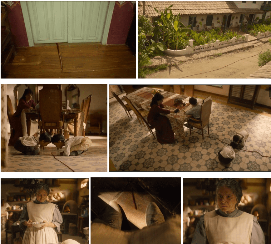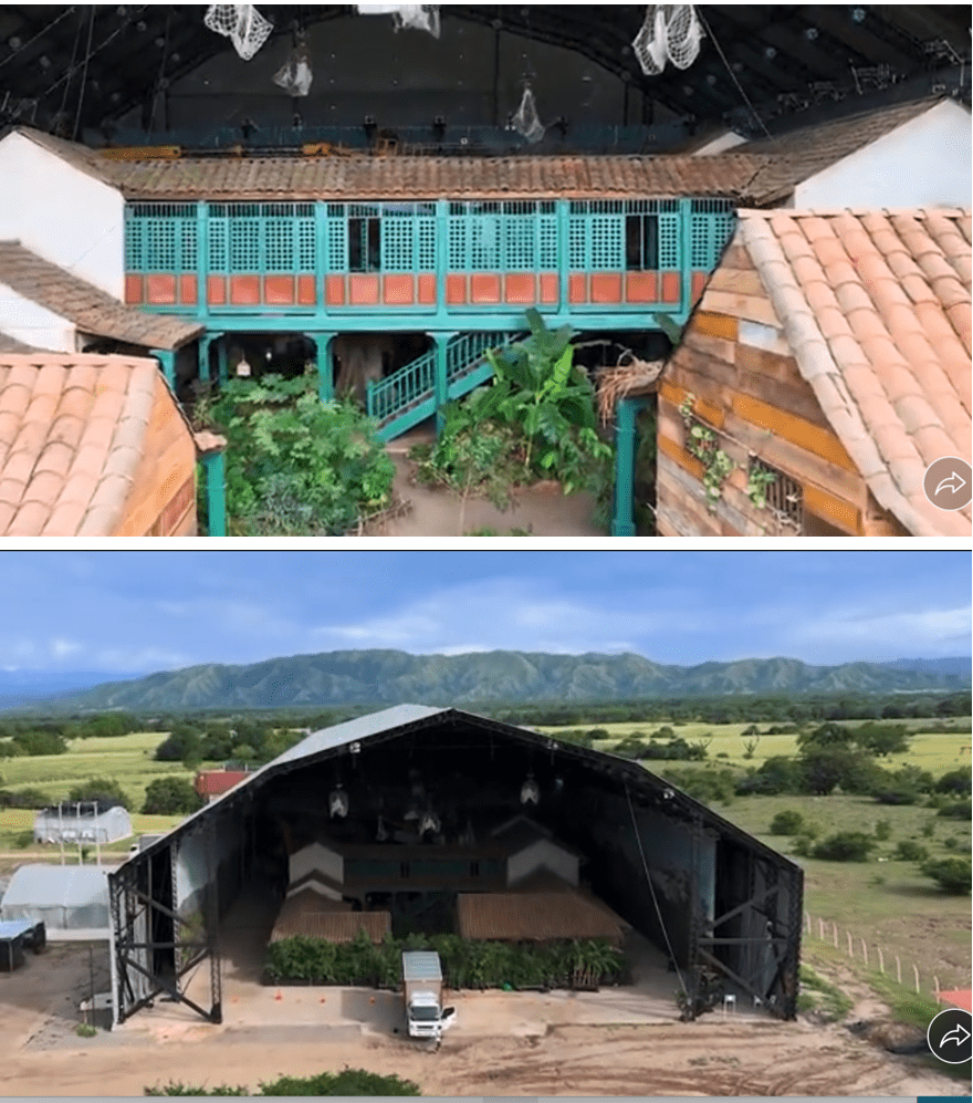Macondo, ngôi làng nơi “Trăm Năm Hiu Quạnh” diễn ra, không có thực mà do tưởng tượng của tác giả, được dàn dựng trong phim trường tại một vùng đồng trống ở Colombia, quê hương của tác giả và cũng là bối cảnh của cuốn tiểu thuyết. Hình trên là ngôi nhà của dòng họ Buendía được dựng trong một cái nhà chứa máy bay nhằm che nắng mưa trong lúc quay phim. Xem interactive video tại đây. (Ảnh Netfilx)