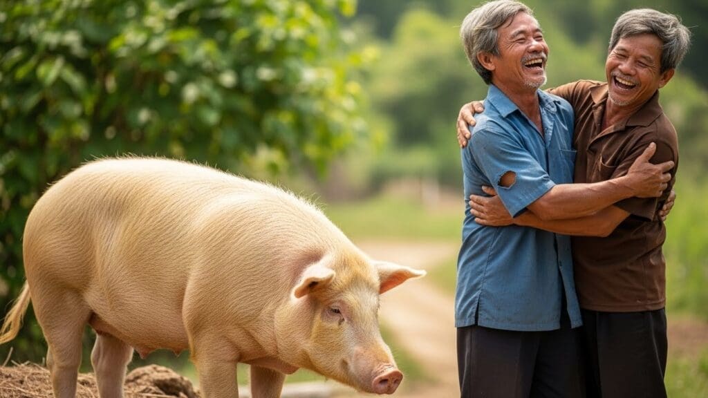 – Ờ nhỉ. Tại ông thầy phong thủy kia không nói rõ. Là ba đời con lợn, chứ không phải ba đời người.