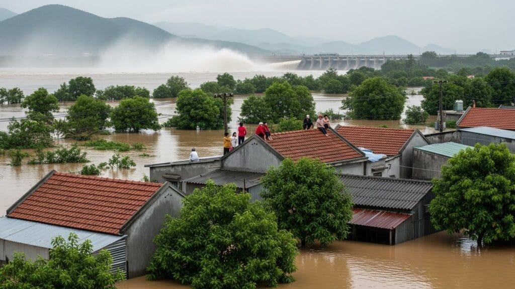 – Lụt gì, tụi nó xả hồ đó! nước lụt lên từ từ chậm chạp, còn nước xả hồ nó bất thần ập vô.