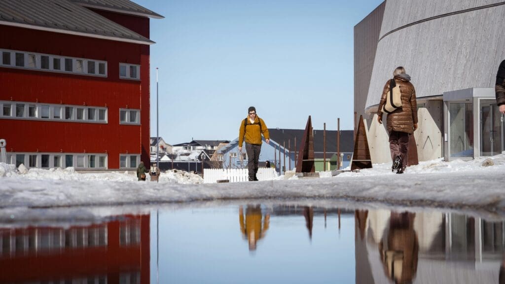 Từ trái sang phải: Lễ kỷ niệm Ngày Quốc khánh Greenland tại Sisimiut, Greenland, vào ngày 21 tháng 6 năm 2010, kỷ niệm một năm ngày Tự trị, photo: Wiki commons, Người dân Greenland đang nhổ lông một con chim biển, hình chụp 1960s. Photo: SAS Scandinavian Airlines, via Wiki commons, Cảnh mùa đông ở Nuuk, Greenland, photo: Pexels