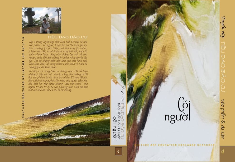 Tập 4 trong Tuyển tập Tiêu Dao Bảo Cự này có tựa Tác phẩm, Con người, Cuộc đời và Dư luận ghi lại tất cả những bài giới thiệu, phê bình từng tác phẩm; ý kiến trao đổi, tranh luận về từng bài viết, nhất là phần chính luận; cũng như những bài viết về con người, cuộc đời hay những kỷ niệm riêng tư với tác giả. Tất cả những điều này làm nên một hình ảnh Tiêu Dao Bảo Cự trong nhiều chiều kích và nhìn từ những góc độ khác nhau.